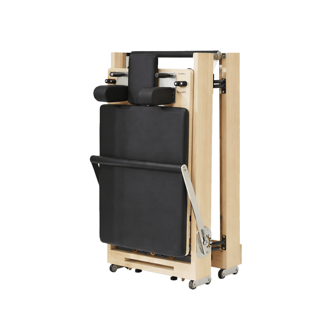 Dieser klappbare Pilates Reformer aus edlem Eichenholz wurde speziell für begrenzte Platzverhältnisse entwickelt – ideal für das Training zu Hause oder in kleineren Studios.